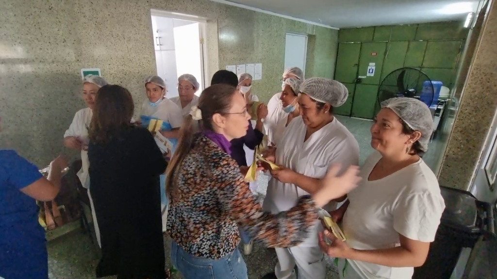 Paola Parra Suárez, miembro de la Mesa de Género y Subdirectora de Gestión y Desarrollo de las Personas del Psiquiátrico, explicó que la idea era “saludar el mismo 8 de marzo, Día Internacional de la Mujer, a las funcionarias; al personal externo que nos apoya en los distintos ámbitos de alimentación y aseo y también saludar a las pacientes que están internadas con nosotros o consultando en urgencia”.